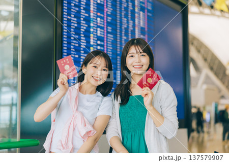 兩名女子在機場手持護照。 (圖片由關西國際機場(KIX)提供)