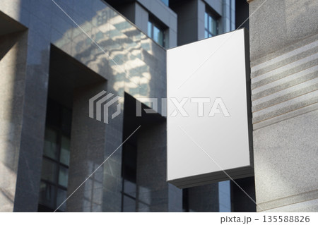 Blank White round signboard on the wall of a shopping center in the city.Mockup for design