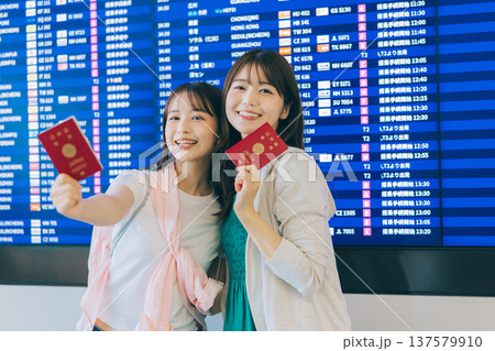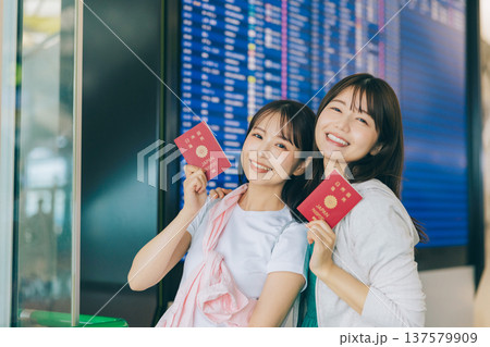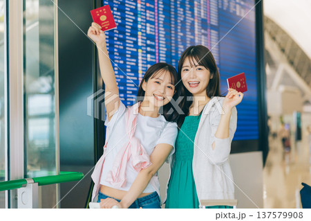 兩名女子在機場手持護照。 (圖片由關西國際機場(KIX)提供)