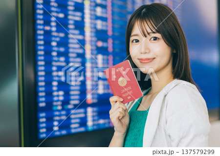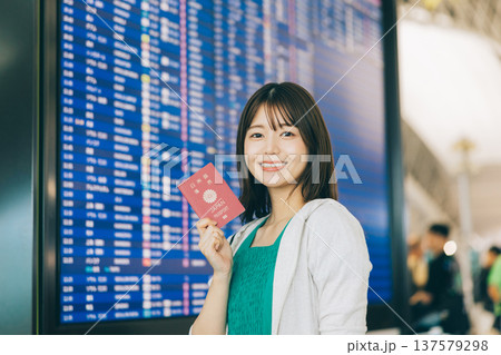 一名女子在機場手持護照(照片由關西國際機場(KIX)提供)