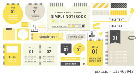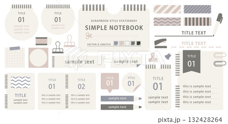 文具和筆記本設計套裝/流行而簡單的剪貼簿風格插圖素材