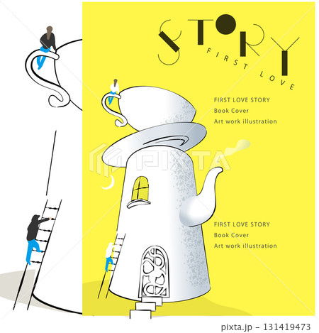 茶壺屋-等待愛人的女人-平面插圖-小說封面、設計模板、向量插圖 1