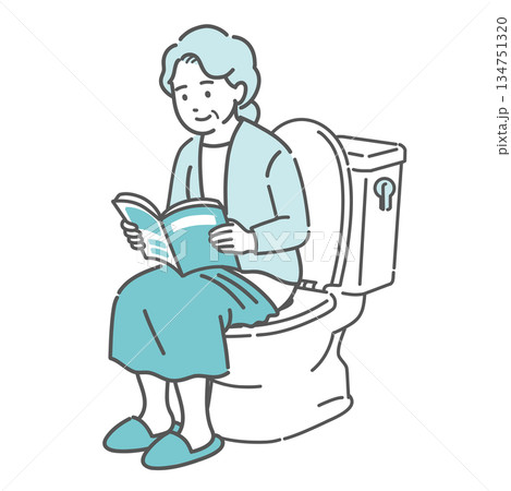圖:一位老婦人在廁所裡看書(閱讀時間過長會導致痔瘡、中暑)