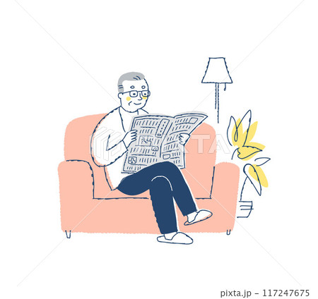 Retired Man Reading Newspaper Relaxing Retirement Vector