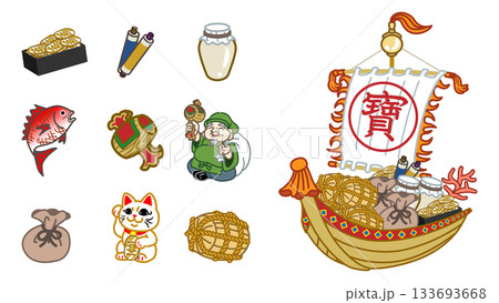 新年和年終日式裝飾橫幅、框架套裝、向量插畫、新年、新年、年終禮物、Mizuhiki