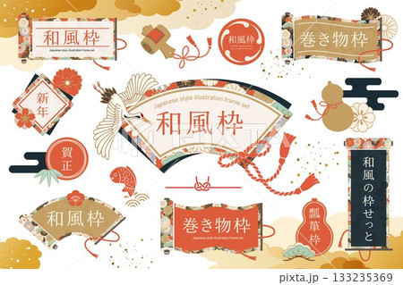日式設計素材包:邊框、裝飾、標題、新年素材