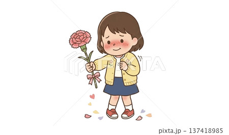 一個孩子害羞地獻上一朵康乃馨