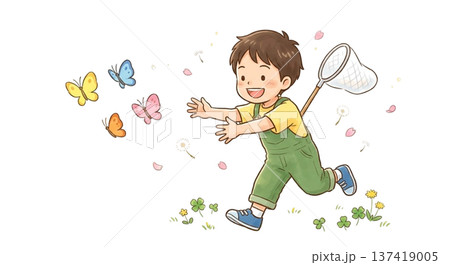 在溫暖的天氣裡追逐蝴蝶