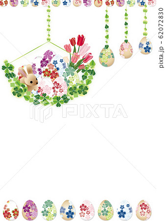 復活節彩蛋裝飾和春天的花朵和兔子插畫垂直風格背景素材