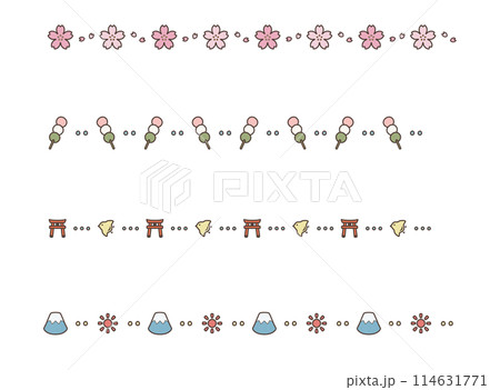 流行裝飾邊框/線條(彩色):櫻花、餃子、神社、富士山