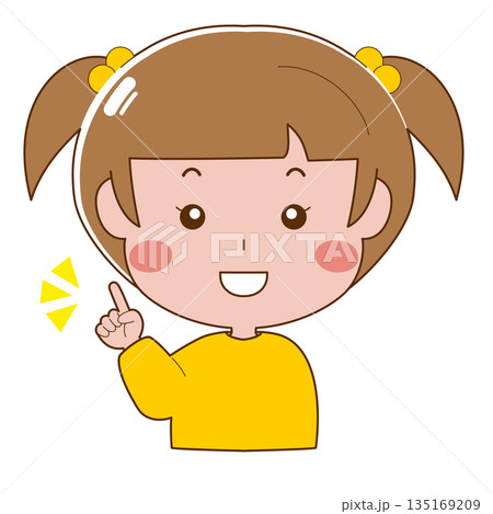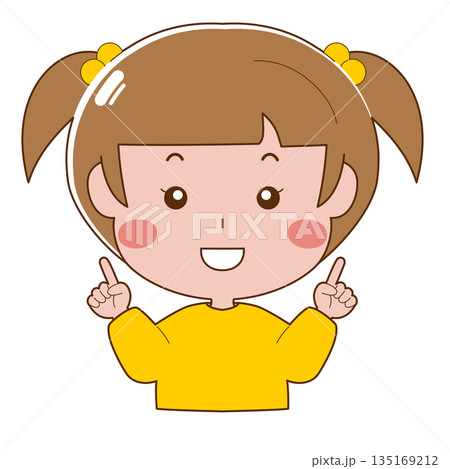女孩面帶微笑,雙手指著前方。
