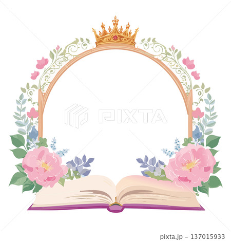 童話風格的花框,配有皇冠和書籍
