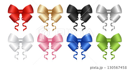 Set of 3d colorful shiny ribbon bow on white background vector illustration,
