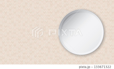 Top view of blank circle plate place on white knit cloth background