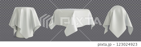 3d covered objects under white cloth drapery