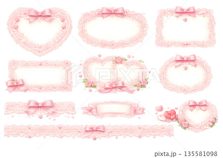 粉紅蕾絲相框裝飾套裝 - 少女風透明背景材質
