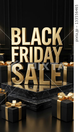 Luxury 3D Gold Black Friday Text on Black Marble Podium