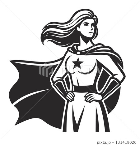 A powerful woman superhero with a cape, concept strength and empowerment.