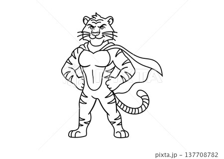 Tiger superhero standing confidently with cape flowing behind lone art isolated on white background