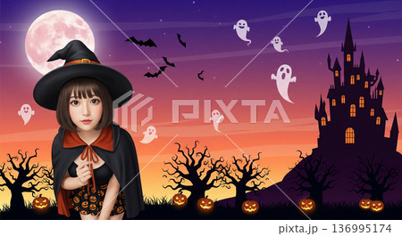 穿著萬聖節女巫服裝的女孩