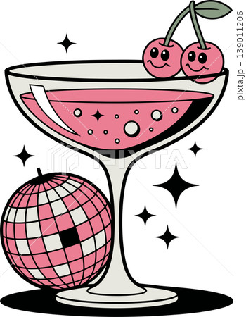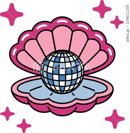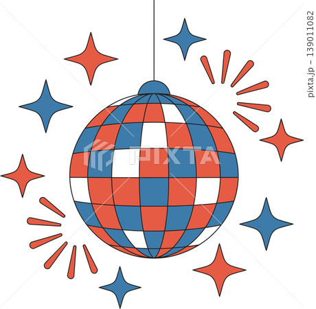 Y2K Retro disco ball with sparkling stars, vibrant colors and a fun party vibe