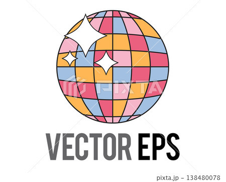 A stylized disco ball with a grid of colorful squares and bright starbursts, evoking a sense of celebration and retro fun