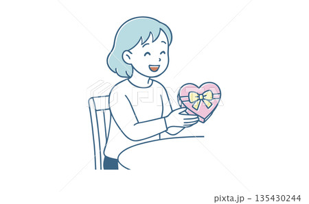 一位女士開心地拿著心形禮盒的插圖(情人節/生日)