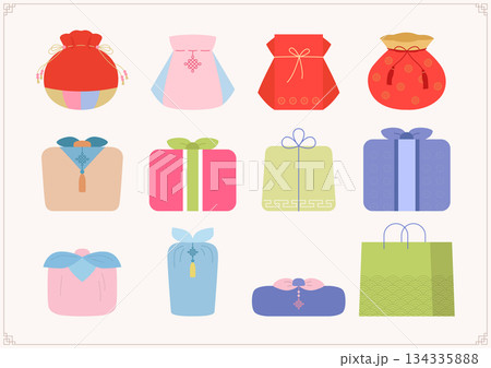 日式框架套裝,適用於年終禮物、年中禮物、新年賀卡、冬季禮物、夏季禮物、向量插畫、包袱皮、年度禮物