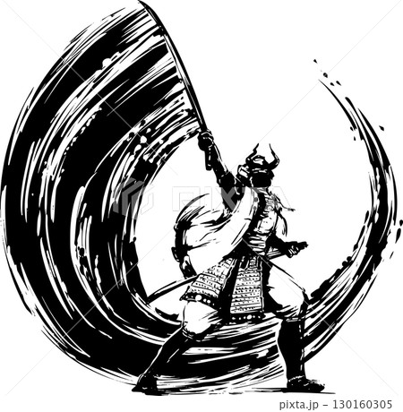 織田信長的手繪插圖(毛筆水彩墨繪風格)
