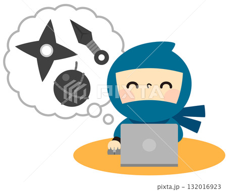 可愛的忍者人物插畫投擲手裡劍 - 一個簡單而友好的日式吉祥物人物