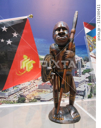 關西博覽會:巴布亞紐幾內亞國旗和娃娃
