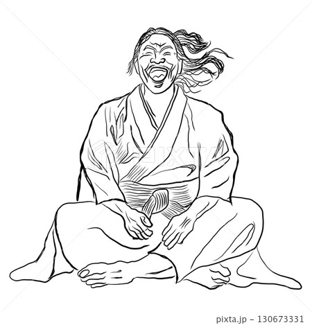 身穿盔甲、持有軍階的戰國軍事指揮官,黑白線畫