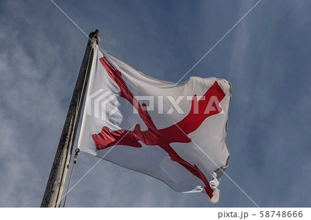 Cross of Burgundy flag at Castillo de San Marcos in St. Augustine, USA