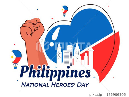 Philippines Heroes Day Vector Illustration with Waving Flag and Ribbon in a National Holiday Celebration, Flat Cartoon Style Background