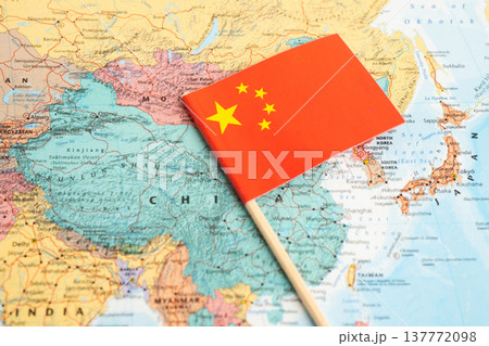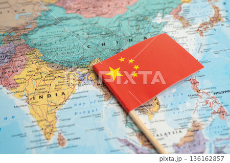 Bangkok, Thailand July 13, 2025 China flag on world map.