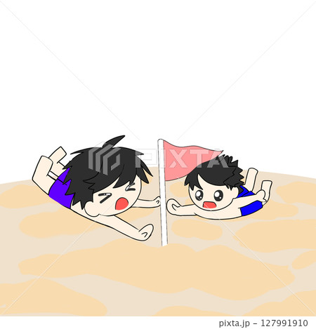 沙灘旗,拿旗,兒童,夏天,玩耍