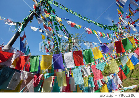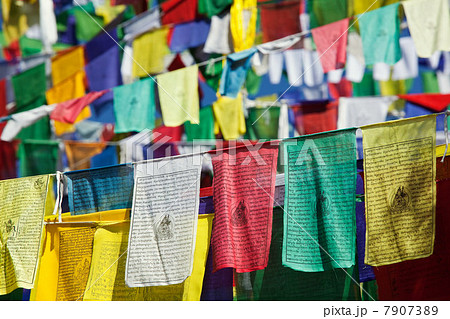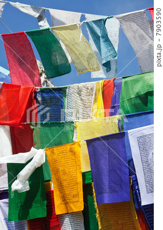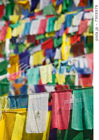Buddhist prayer flags, Kunzum La pass, Himachal Pradesh, India