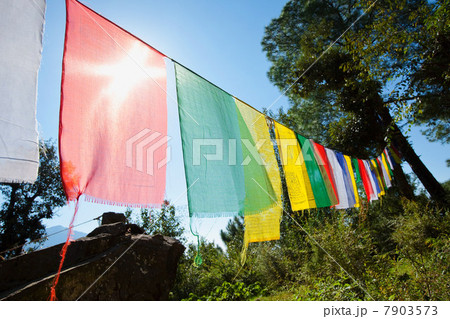 Buddhist prayer flags, Tsuglagkhang temple, McLeod Ganj, Himachal Pradesh, India