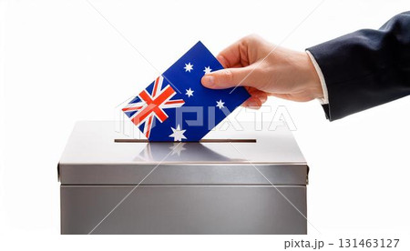 澳洲國旗上的手動投票選票和投票箱。選舉。