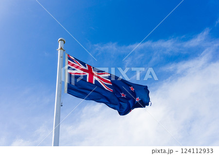 紐西蘭國旗在藍天上迎風飄揚