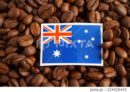 Australia flag on coffee bean, import export trade online commerce.