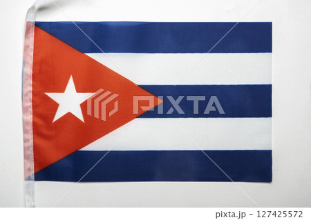 Closeup view of the Cuba national flag isolated over a white background. Concept of government and nationality