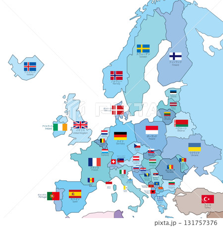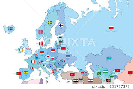 歐洲地圖 - 國家顏色編碼、國旗和國家名稱層
