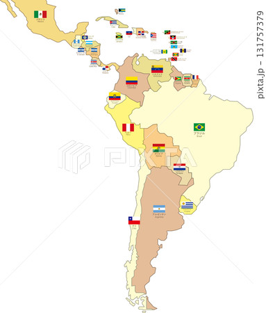 南美洲地圖 - 國家顏色編碼、國旗和國家名稱層