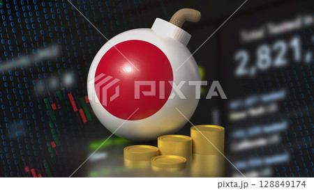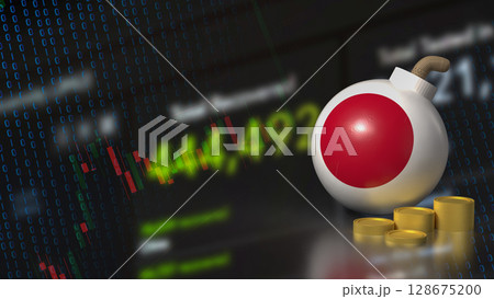 The Japan Bomb and coins for Business crisis concept 3d Rendering.