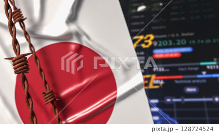 The Japan Flag and barbed wire for Business crisis concept 3d Rendering.