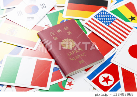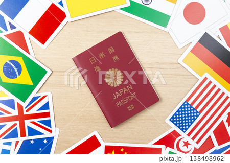 許多國旗和一本日本護照