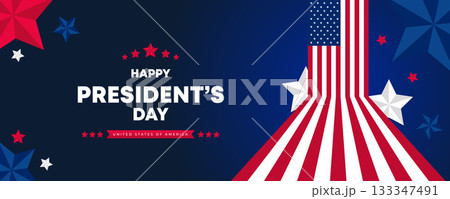 Happy Presidents Day Web Banner With USA Flag. Presidents Day Cover, Website, Header Background. Washington's Birthday Celebrated in United States Suitable for Poster, Greeting Card, Brochure, post