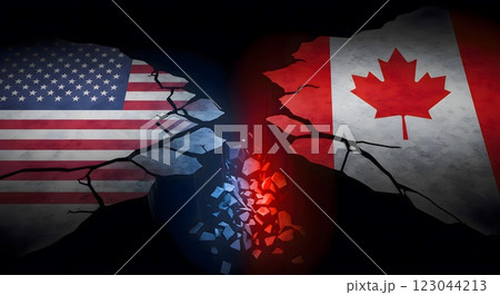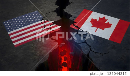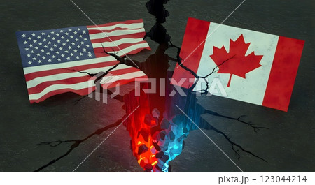 USA and Canada Flags Split by a Deep Cracked Chasm with Red Glow