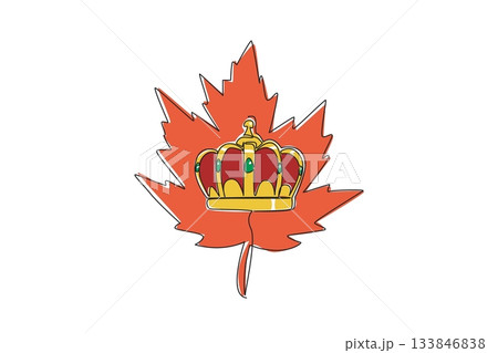 Continuous one line drawing maple leaf with a crown in the middle. A holiday to honor the contributions of the Queen. History and culture. Victoria Day. Single line draw design vector illustration